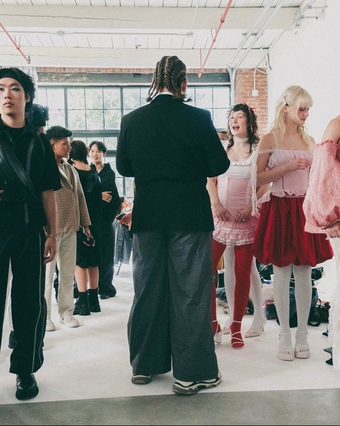 On September 9, 2024, Lucas presented his first Fall/Winter apparel collection developed in high school for New York Fashion Week following an editorial rollout photograped by Tamara Benarroch. Alongside fellow Parsons students Amelia Addicot, Yoko Boccara, Klara Han, Kaylie Huynh, and Sophia Rocco, he showed 10 looks in a showcase orchestrated by Aashriya Dinesh and Gauri Subramani under the Neptune House fashion collective. Drawing on forms and textures from Land’s Sake Farm, where he worked as a project assistant, his lineup explored performance-driven silhouettes, technical fabrics, and functional detailing.